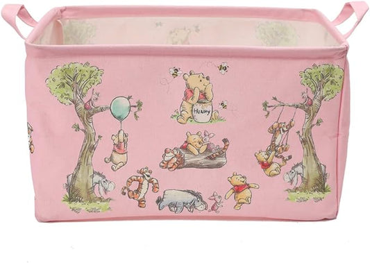Winnie Storage Nursery Basket, Large Square Canvas Laundry Hamper With A Waterproof PE Coating, Foldable,Bathroom and Bedroom Set, Clothes ,Toys Bin, baby Nursery Hamper Decor(Pink)
