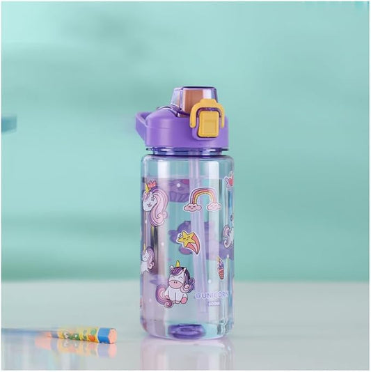 Kids Boys & Girls School and outdoor Water Bottle with silicone straw and Spill-Proof Lid (Unicorns & Rainbows), GY2380