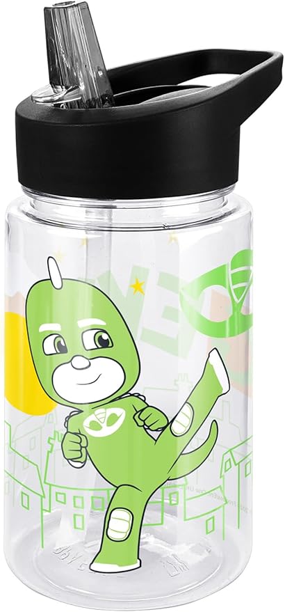 LOGOVISION PJ Masks Kids Tritan Plastic Water Bottle with Straw Lid and Handle, Reusable Tumbler for Toddlers, Unisex for Girls and Boys, 12oz, Big Gekko