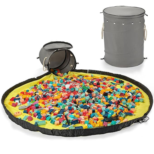 Toy Storage Basket + Play Mat for Kids Toy Chest Organizer Kids Toy Storage Organizer Foldable Big Storage Bins with Lids Large Toy Box for Boys Girls Toy Holders for Kids Rooms Nursery (Gray)