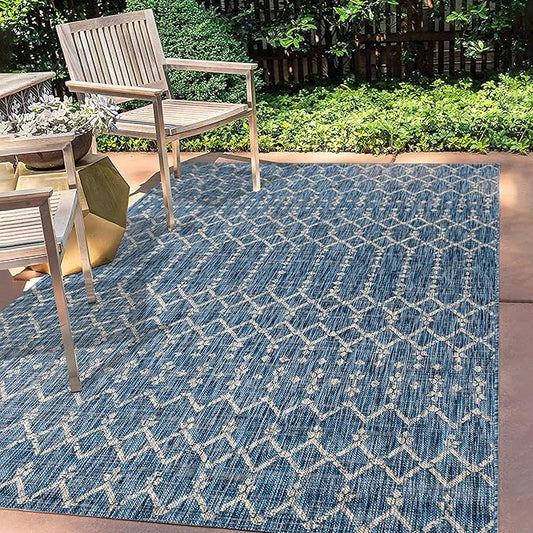 JONATHAN Y SMB108K-9 Ourika Moroccan Geometric Textured Weave Indoor Outdoor Area-Rug, Bohemian Coastal Traditional Easy-Cleaning,Bedroom,Kitchen,Backyard,Patio,Non Shedding, 9 X 12, Navy/Beige