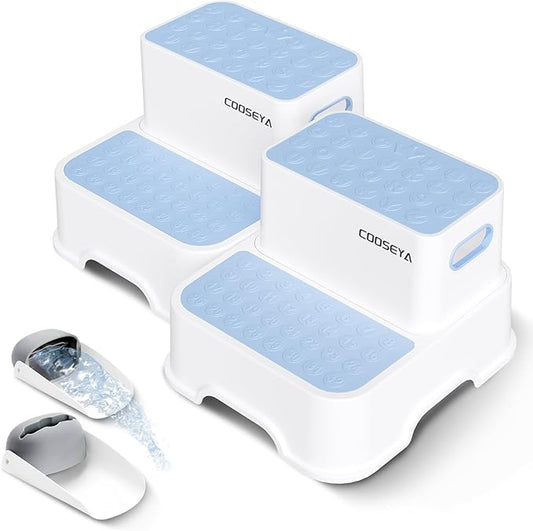 2 Step Stools for Kids,Toddler Step Stool for Bathroom Sink,No-Slip Double up Step Stool for Toddlers Bathroom, Multifunctional Toilet Step Stool for Kids,Toilet Potty Training(2 Packs)(Blue)