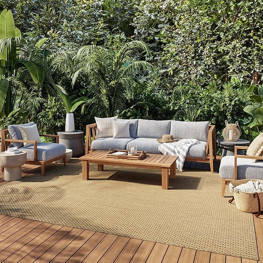 Nourison Courtyard Jute 5' x 7' Area Rug - Easy Clean, Non Shedding, Bed Room, Living Room, Dining Room, Kitchen (5' x 7')