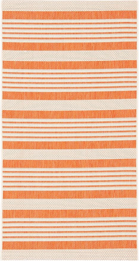 SAFAVIEH Courtyard Collection Accent Rug - 2'7' x 5', Terracotta & Beige, Stripe Design, Non-Shedding & Easy Care, Indoor/Outdoor & Washable-Ideal for Patio, Backyard, Mudroom (CY6062-241)