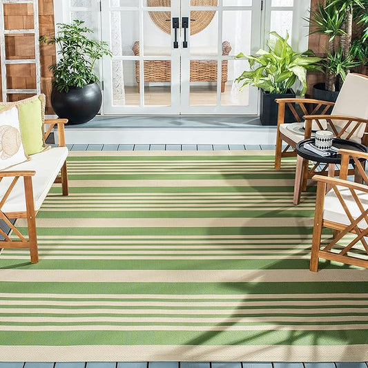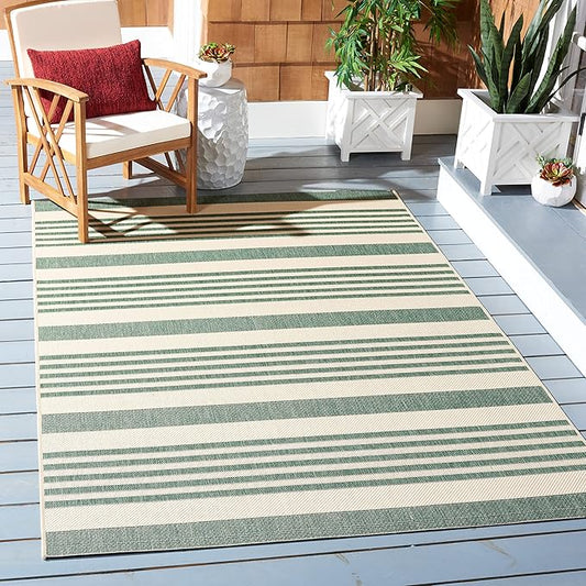 SAFAVIEH Courtyard Collection 9' x 12' Beige/Dark Green CY6062 Stripe Indoor-Outdoor Waterproof Easy-Cleaning Patio Backyard Mudroom Area-Rug