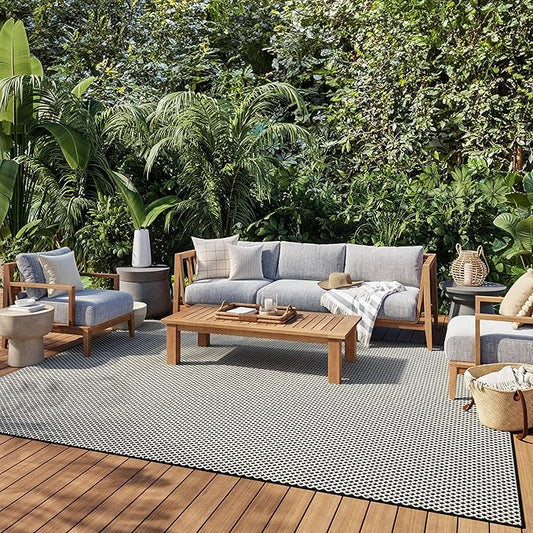 Nourison Courtyard Black White 8' x 10' Area Rug - Easy Clean, Non Shedding, Bed Room, Living Room, Dining Room, Kitchen (8' x 10')