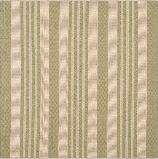 SAFAVIEH Courtyard Collection Area Rug - 7'1 Square, Green & Beige, Stripe Design, Non-Shedding & Easy Care, Indoor/Outdoor & Washable-Ideal for Patio, Backyard, Mudroom (CY6062-244)