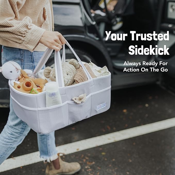 - Stylish & Functional Diaper Caddy Organizer for Boy or Girl Nursery Room - Our diaper tote is designed with adorable style and colors, and is built with quality fabric. It is soft to touch and high standard you would expect, including removable organizing dividers that you can organize diapering essentials such as diapers, wipes, lotions, toys and many more, all in one place.