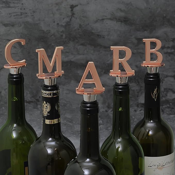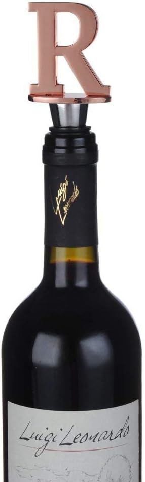 Wine and Beverage Bottle Stopper With Rose Gold Finish-Perfect Presents/Gift Idea for Valentines Day, Mothers Day, Fathers Day, Thanksgiving Day,R-Initial (Letter R)