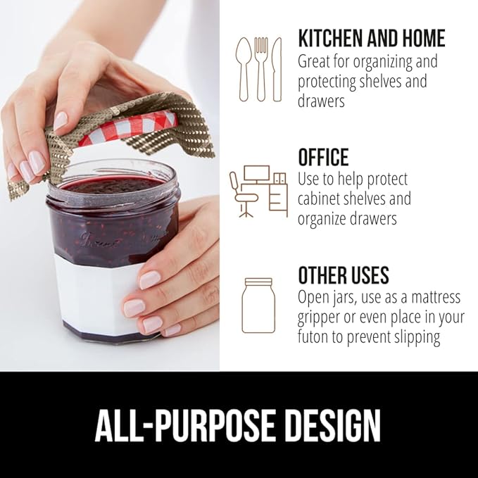 - EXTRA STRONG GRIP NON-ADHESIVE LINER: the Gorilla Grip powerGRIP liner is a non adhesive and tear resistant liner engineered with the highest quality materials to reduce slipping and bunching in your drawers or cabinet shelves; superior gripping technology keeps both the liner in place on surfaces