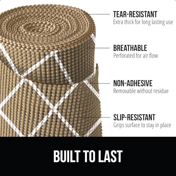 Gorilla Grip powerGRIP Drawer Shelf and Cabinet Liner, Thick Strong Hold, Non-Adhesive Liners Protect Kitchen Cabinets and Cupboard, Bathroom Drawers, Easy Install, Breathable Mat, 12" x20', Beige