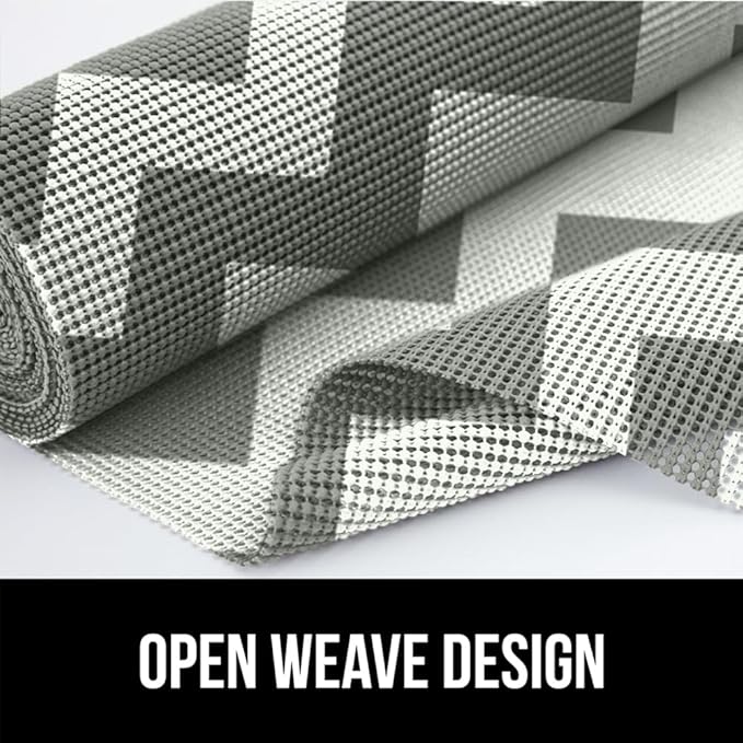 Gorilla Grip powerGRIP Drawer Shelf and Cabinet Liner, Thick Strong Hold, Non-Adhesive Liners Protect Kitchen Cabinets and Cupboard, Bathroom Drawers, Easy Install, Breathable Mat, 17.5"x10', Chevron