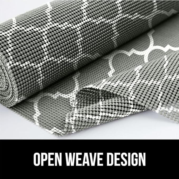Gorilla Grip powerGRIP Drawer Shelf and Cabinet Liner, Thick Strong Hold, Non-Adhesive Liners Protect Kitchen Cabinets and Cupboard, Bathroom Drawers, Easy Install, Breathable Mat, 17.5" x10', Gray