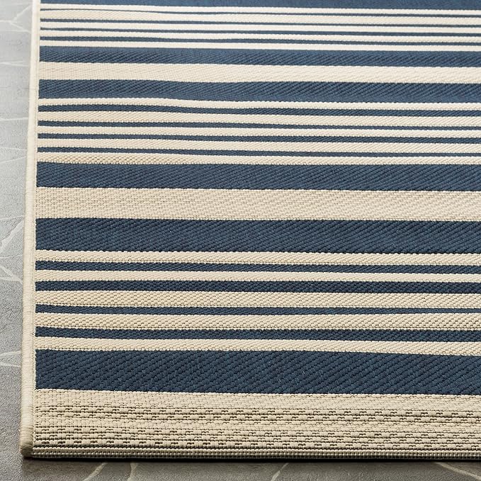 SAFAVIEH Courtyard Collection 8' x 10' Navy/Beige CY6062 Stripe Indoor/ Outside Waterproof Easy cleansingPatio Backyard Mudroom Area Mat
