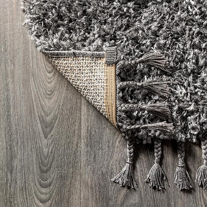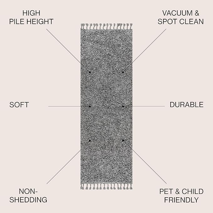 JONATHAN Y MCR100B-28 Mercer Shag Plush Tassel Indoor Runner Rug Bohemian Modern Contemporary Solid Easy-Cleaning Bedroom Kitchen Living Room, 2 X 8, Charcoal with Tassel