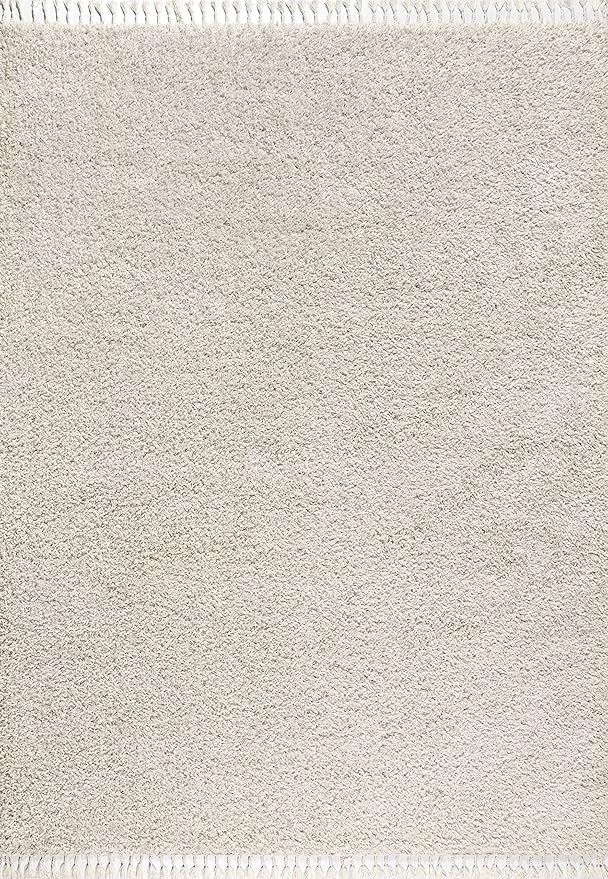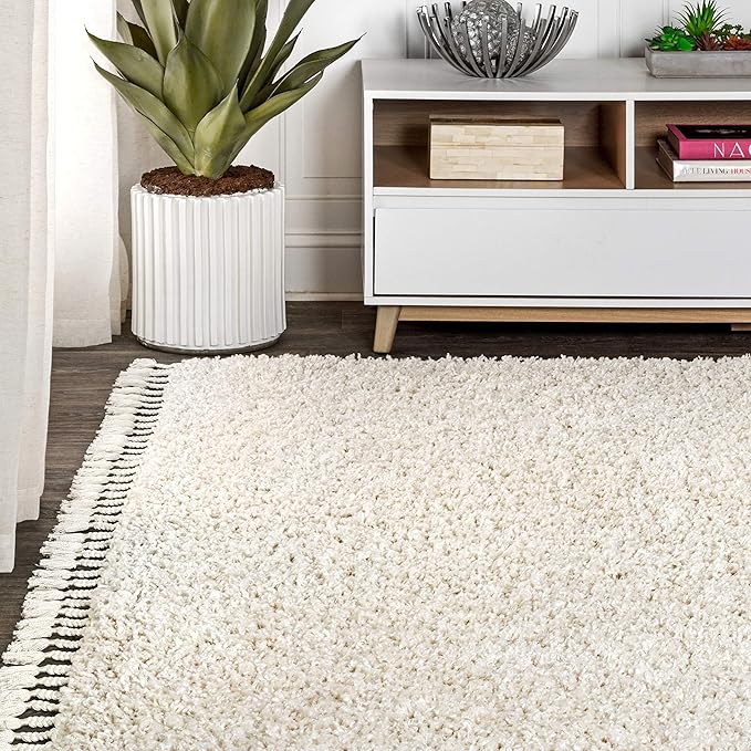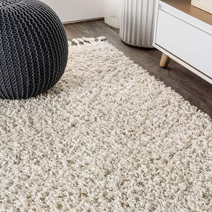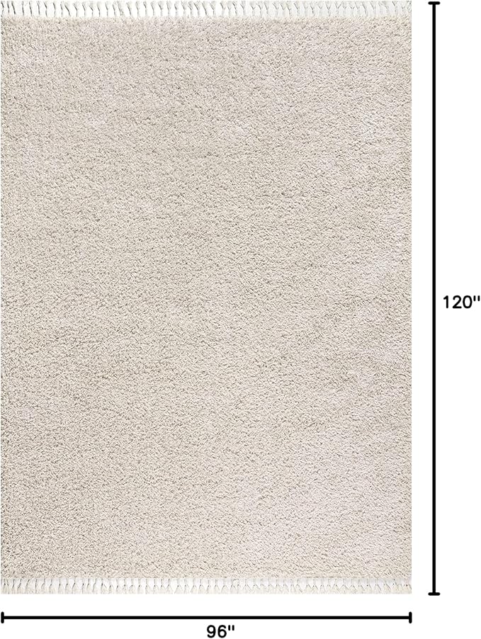 JONATHAN Y MCR100D-8 Mercer Shag Plush Tassel Indoor Area-Rug Bohemian Modern Contemporary Solid Easy-Cleaning Bedroom Kitchen Living Room, 8 X 10, Cream with Tassel