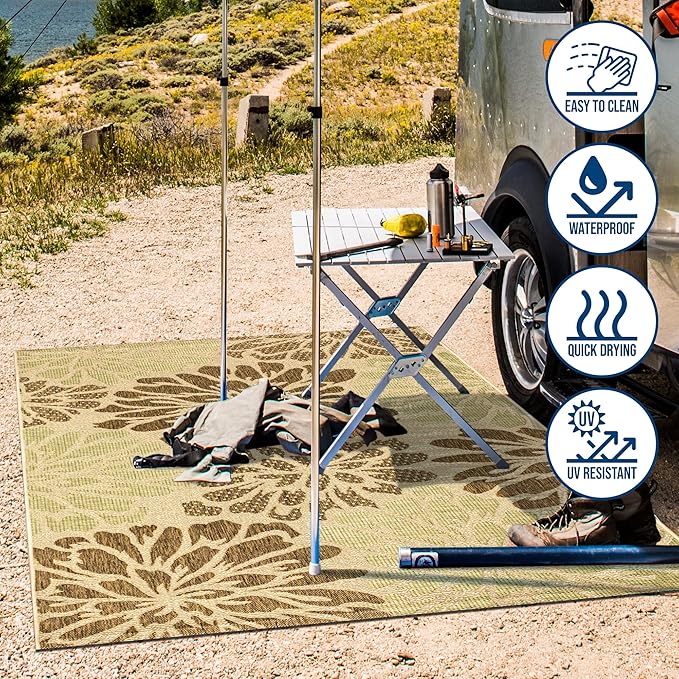 - INDOOR/OUTDOOR DURABILITY: Give your patio, deck or porch an instant makeover with an indoor/outdoor rug; Low-pile synthetic rug fibers are durable for high-traffic spaces like the kitchen, mud room or entry; Perfect for families with kids
