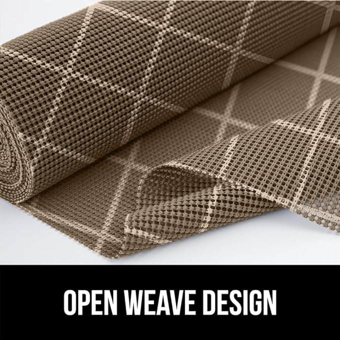 Gorilla Grip powerGRIP Drawer Shelf and Cabinet Liner, Thick Strong Hold, Non-Adhesive Liners Protect Kitchen Cabinets and Cupboard, Bathroom Drawers, Easy Install, Breathable Mat, 20" x30', Beige