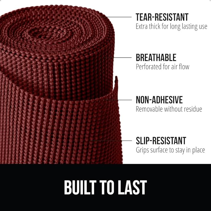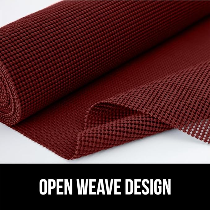 Gorilla Grip powerGRIP Drawer Shelf and Cabinet Liner, Thick Strong Hold, Non-Adhesive Liners Protect Kitchen Cabinets and Cupboard, Bathroom Drawers, Easy Install, Breathable Mat, 17.5" x30', Red