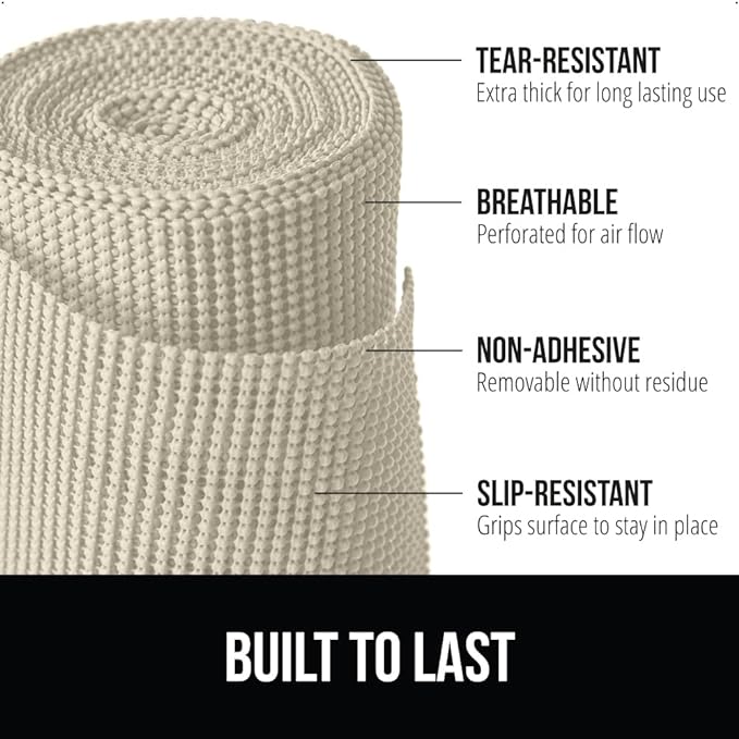 Gorilla Grip powerGRIP Drawer Shelf and Cabinet Liner, Thick Strong Hold, Non-Adhesive Liners Protect Kitchen Cabinets and Cupboard, Bathroom Drawers, Easy Install, Breathable Mat, 20" x30', Cream