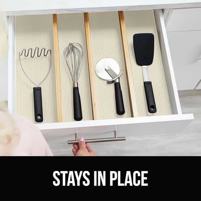 - KEEP ITEMS IN PLACE: thick and durable Gorilla Grip Drawer and Shelf Liners line your drawers and effectively helps to prevent items from moving and shifting around