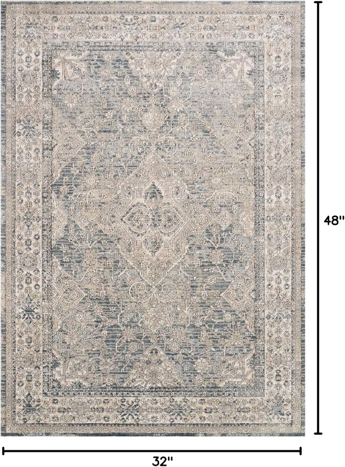 Loloi II Teagan Collection TEA-04 Sky/Natural 2'-8" x 4', .25" Thick, Accent Rug, Soft, Durable, Neutral, Woven, Low Pile, Non-Shedding, Easy Clean, Living Room Rug