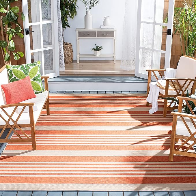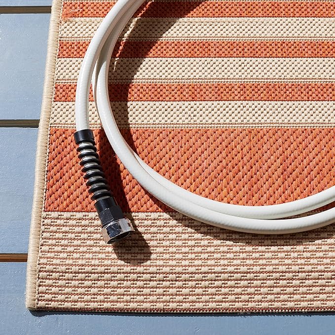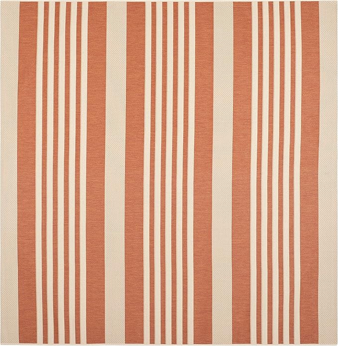SAFAVIEH Courtyard Collection 6'7" Square Terracotta/Beige CY6062 Stripe Indoor/ Outside Waterproof Easy cleansingPatio Backyard Mudroom Area Mat