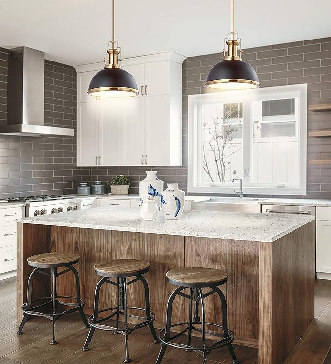 JONATHAN Y JYL9536A Homer 13" 1-Light Modern Industrial Iron LED Dome Pendant, Classic, Cottage, Farmhouse, Industrial, Rustic, Transitional, Office, Living Room, Kitchen, Foyer, Black/Brass Gold