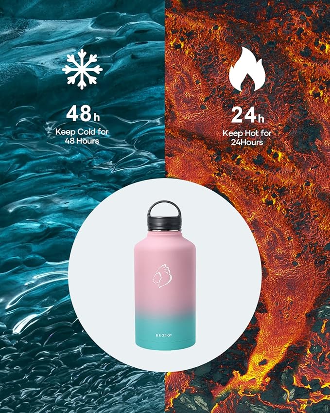 - There is Always One for you: BUZIO insulated water bottle meets your imagination in all aspects of drinking, from the comprehensive sizes (32oz-64oz) to classical and stylish designs, from the production materials to convenient accessories. Come to BUZIO, there is always one for you.