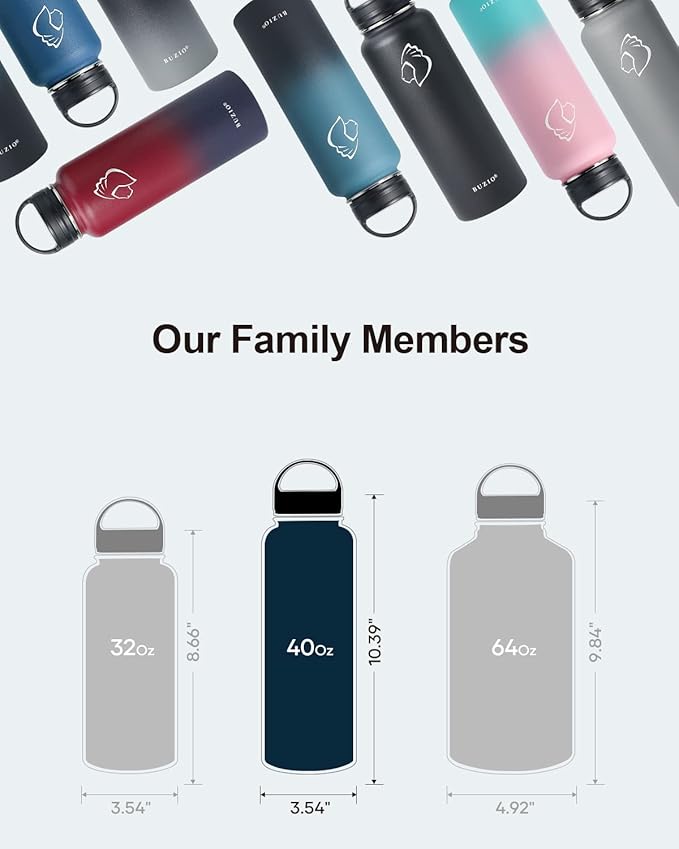 - Super Deal Combo: Buy 40oz insulated water bottle, get 7 accessories, a worry-free lifetime warranty, and friendly customer service. BUZIO water bottle with a delicate packaging box works as a perfect gift for your loved ones.
