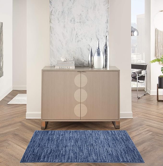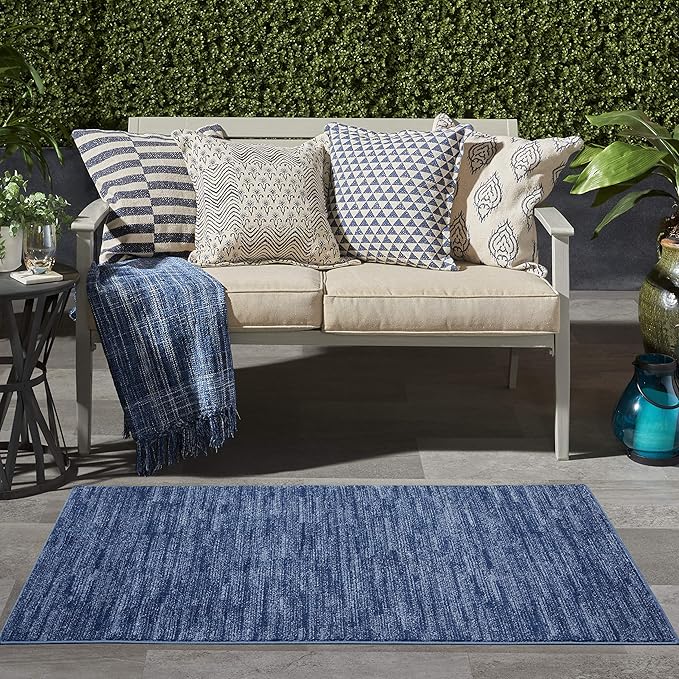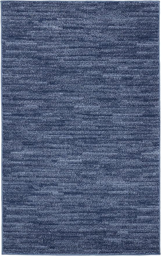 Nourison Essentials Indoor/Outdoor Navy Blue 3' x 5' Area Rug, Easy Cleaning, Non Shedding, Bed Room, Living Room, Dining Room, Backyard, Deck, Patio (3x5)