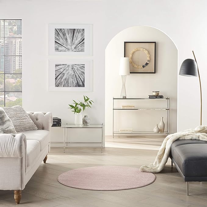 Nourison Essentials Indoor/Outdoor Pink 4' x Round Area Rug, Easy Cleaning, Non Shedding, Bed Room, Living Room, Dining Room, Backyard, Deck, Patio (4 Round)
