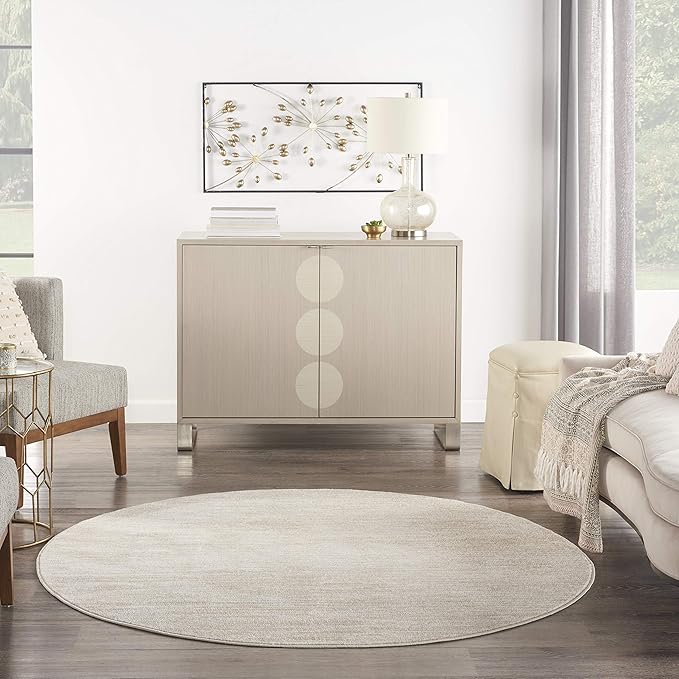 Nourison Essentials Indoor/Outdoor Ivory Beige 6' x Round Area Rug, Easy Cleaning, Non Shedding, Bed Room, Living Room, Dining Room, Backyard, Deck, Patio (6 Round)