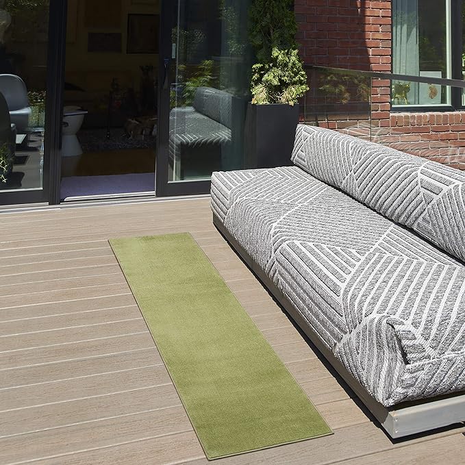 Nourison Essentials Indoor/Outdoor Green 2' x 6' Area Rug, Easy Cleaning, Non Shedding, Bed Room, Living Room, Dining Room, Backyard, Deck, Patio (2x6)