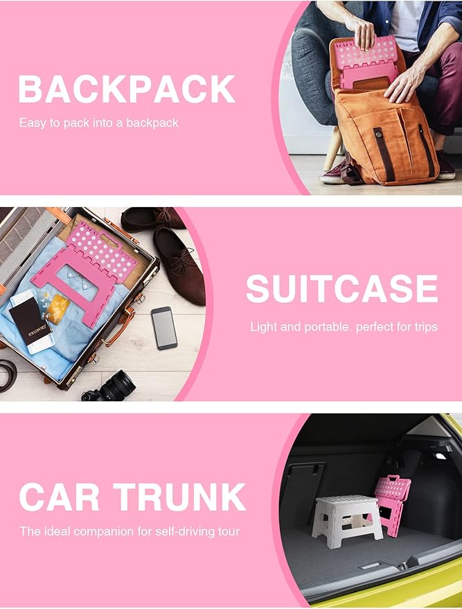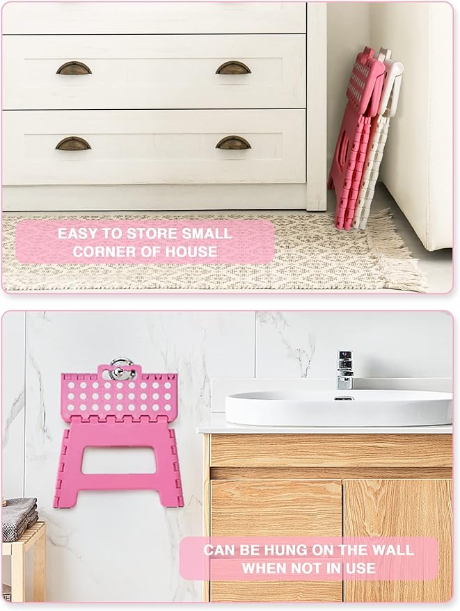 Folding Step Stool 9", Kids Step Stool, Heavy Duty Step Stools for Adults, Compact Foot Stools, Light-Weight Toddler Step Stool for Kitchen, Bathroom, Holds Up to 300 lbs (Pink)