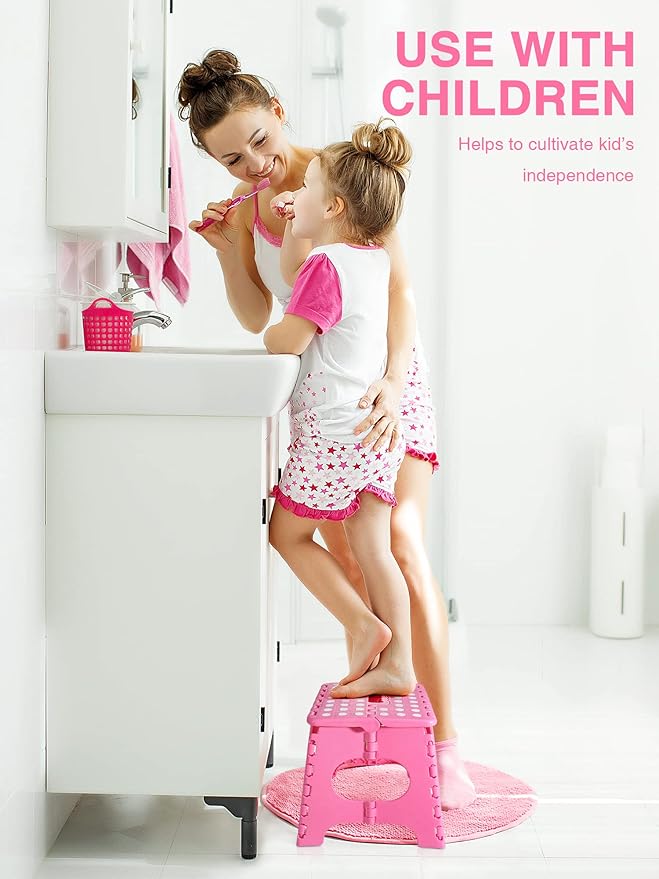 Folding Step Stool 11", Durable Kids Step Stool, Heavy Duty Step Stools for Adults, Compact Foot Stools, Light-Weight Toddler Step Stool for Kitchen, Bathroom, Holds Up to 300 lbs (Pink)