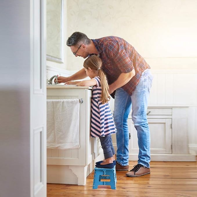 Folding Step Stool 9", Kids Step Stool, Heavy Duty Step Stools for Adults, Compact Foot Stools, Light-Weight Toddler Step Stool for Kitchen, Bathroom, Holds Up to 300 lbs (Blue)