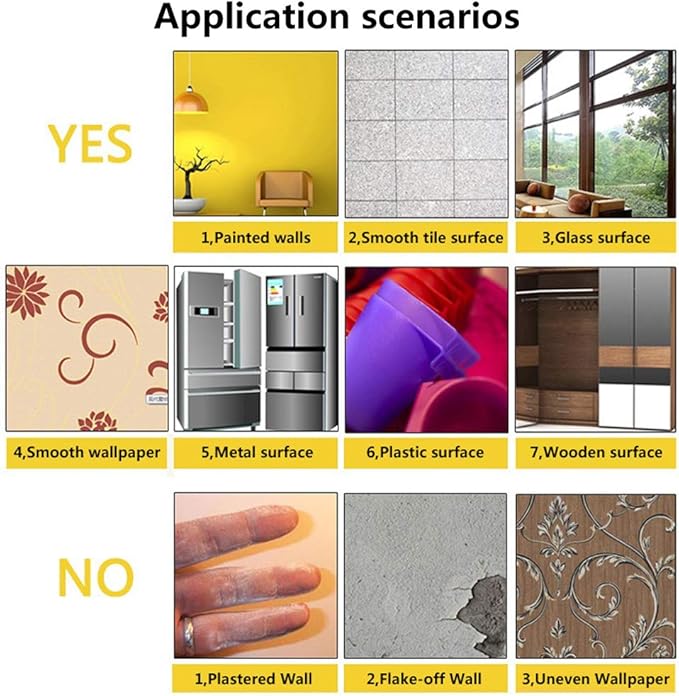 - ♥【Please Attention】 -- Do not stick to any powder coated wall, irregular surface, oil and dust surface, painted surface with Teflon, stain guard or VOC paints that have been used.
