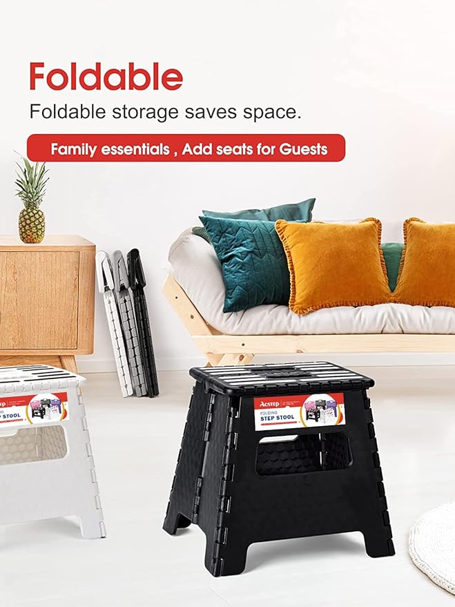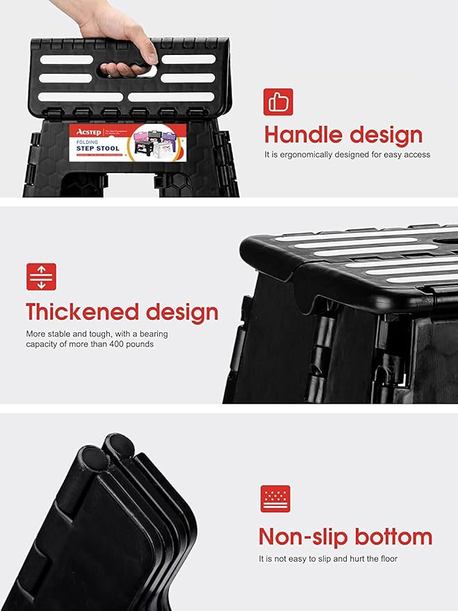 ACSTEP 13“ Folding Step Stool for Adults 1 Pack,Holds Up to 330 lbs, Thicken Plastic Folding Step Stool is Sturdy Enough to Support Adults and Safe Enough for Kids .Black