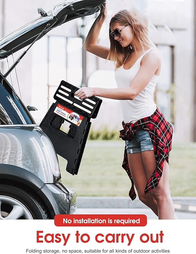 - 【Space Saving Foldable Stool】- It can be opened and folded in an instant with only one hand, Its foldable nature makes it super compact (only 2 inches wide). It’s ready to give you a 16 inch boost or seat!!!. It can be stored in almost any small corner or gap, and can be put in the trunk of a car or in a backpack for outdoor use.