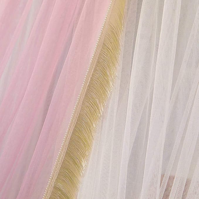 Canopy Frame for Bed with Mesh Netting - Queen Size Bed Canopy Steel Frame with Bed Curtains,Classic Flat Top Mesh Net Bedroom Decor(Stainless Steel Pipes and Accessories Included) (Pink Blue)