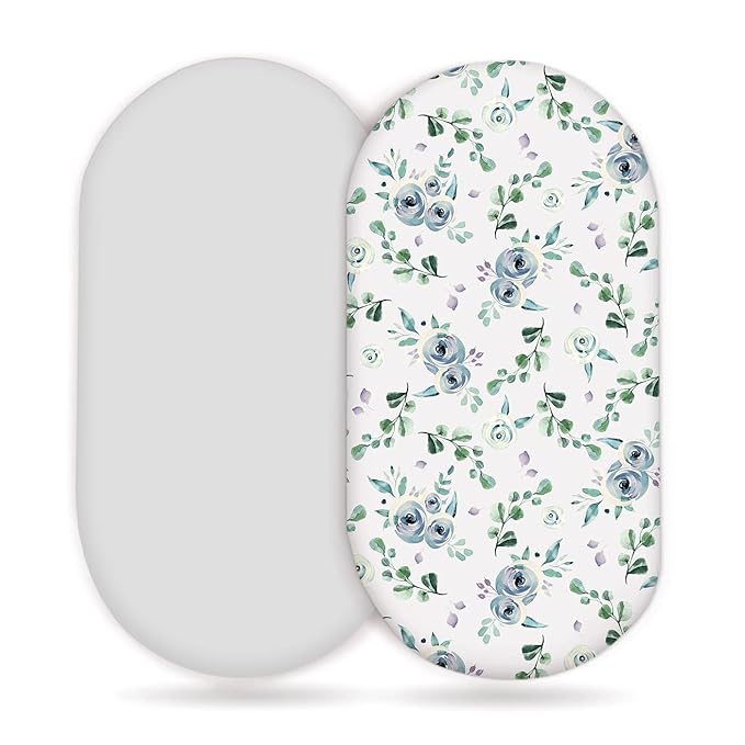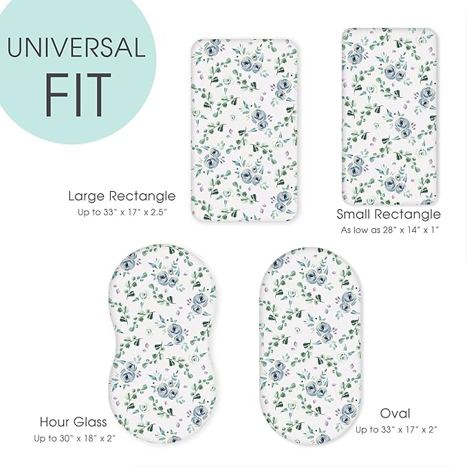 Stretchy Ultra Soft Fitted Bassinet Sheet Set 2 Pack, Universal Cradle Sheet Set for Rectangle, Oval, or Hourglass Bassinet Pad/Mattress, Blue Rose for Girls and Boys