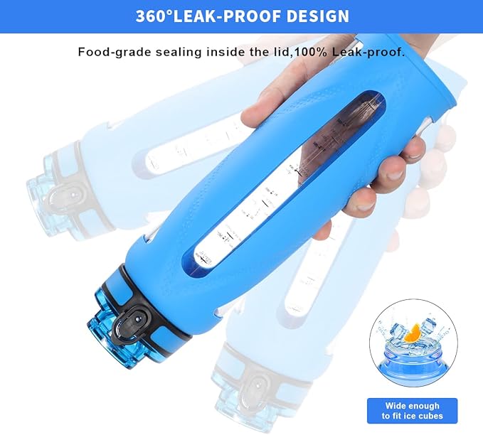 - 【MOTIVATIONAL WATER BOTTLES & TIME MARKER】 Time markers and water capacity marker on the bottles, Great for measuring your daily intake of water and a reminder to drink the perfect amount of water each day; A must have for any fitness goals including weight loss, appetite control and overall health