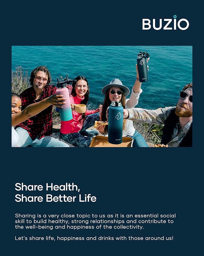 - There is Always One for you: BUZIO insulated water bottle meets your imagination in all aspects of drinking, from the comprehensive sizes (32oz-64oz) to classical and stylish designs, from the production materials to convenient accessories. Come to BUZIO, there is always one for you.