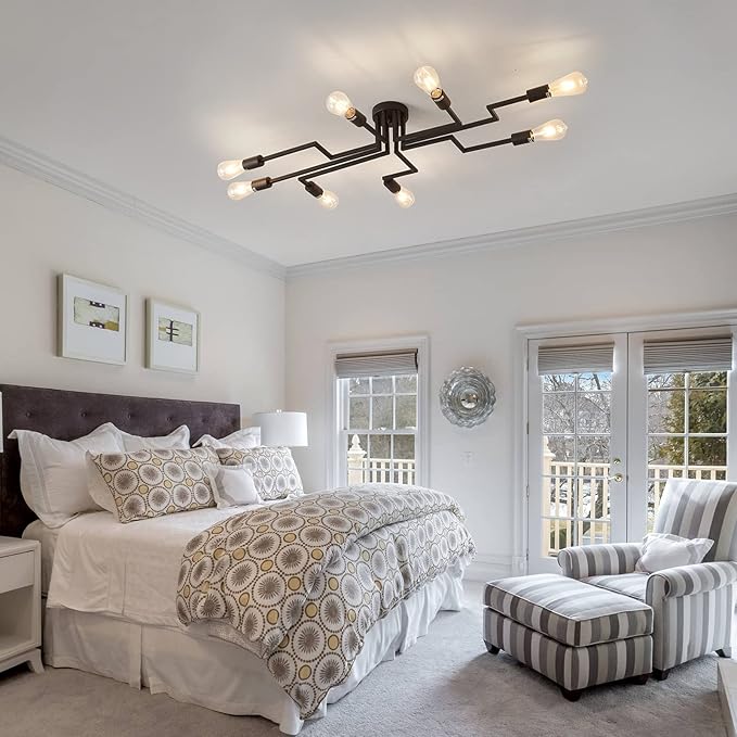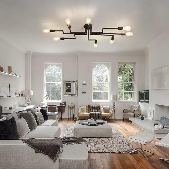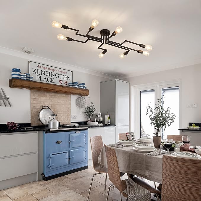 ZGLAOJTBlack 8-Light Ceiling Light, Modern Semi Flush Mount Ceiling Light Fixture,Metal Chandelier for Farmhouse Dining Room Living Room Bedroom Kitchen.