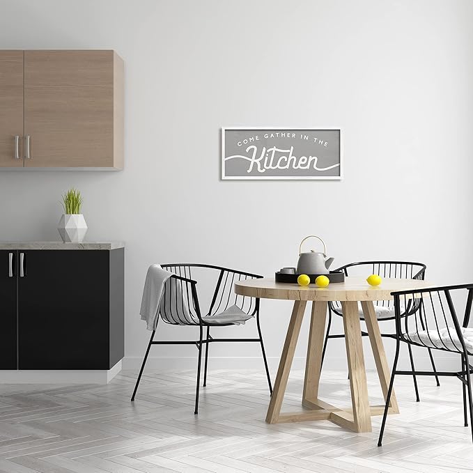 Stupell Industries Gather in The Kitchen Sign Rustic Family Phrase, Designed by Daphne Polselli White Framed Wall Art, 10 x 24, Grey