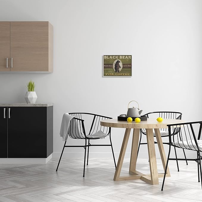 Stupell Industries Black Bear Fine Coffee Rustic Kitchen Mountain Animal, Designed by June Erica Vess Gray Framed Wall Art, 11 x 14, Green