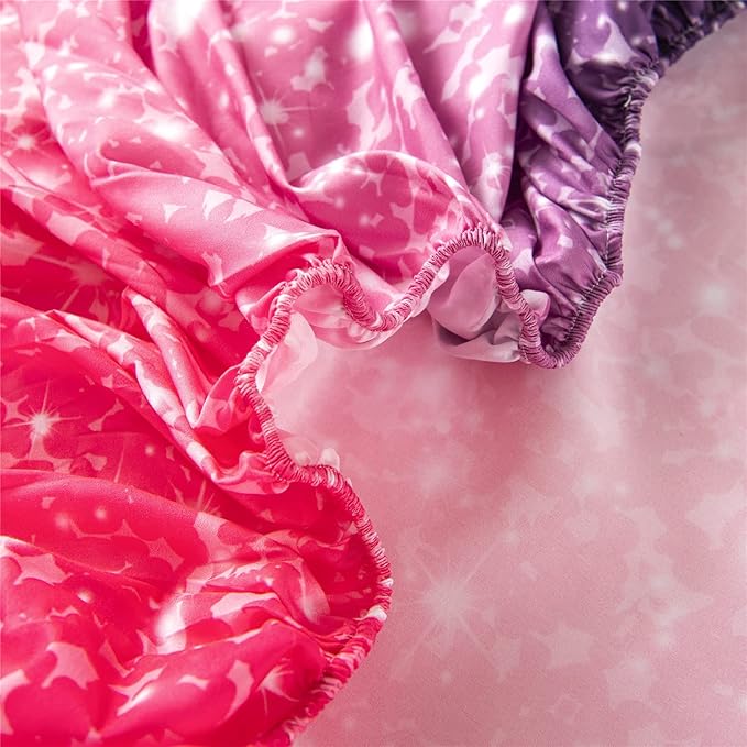 - 【Size & Measurement】Full Size Pink Blue Glitter Theme Bed Sheet Set Includes: 1 Fitted Sheet: 54"x75"(15.7''deep), 1 Flat Sheet: 81''x96'', 2 Pillowcases: 20" x 30"