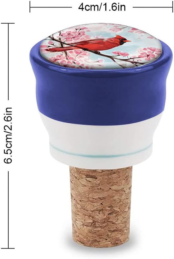 WIRESTER Set of 4 Ceramic Cork Decorative Wine Bottle Stoppers For Bar, Holiday, Party, Wedding - Red Cardinal Birds