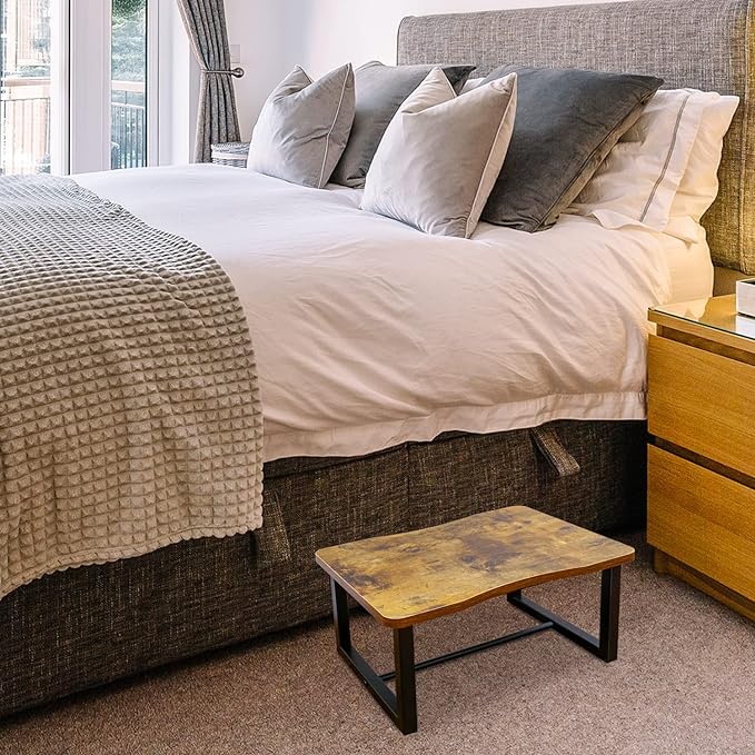 Wooden Step Stool,Bed Step Stool for Adult,Wood One Step Stool for Kitchen, Bedroom, Living Room, Bathroom Hold up to 500lbs